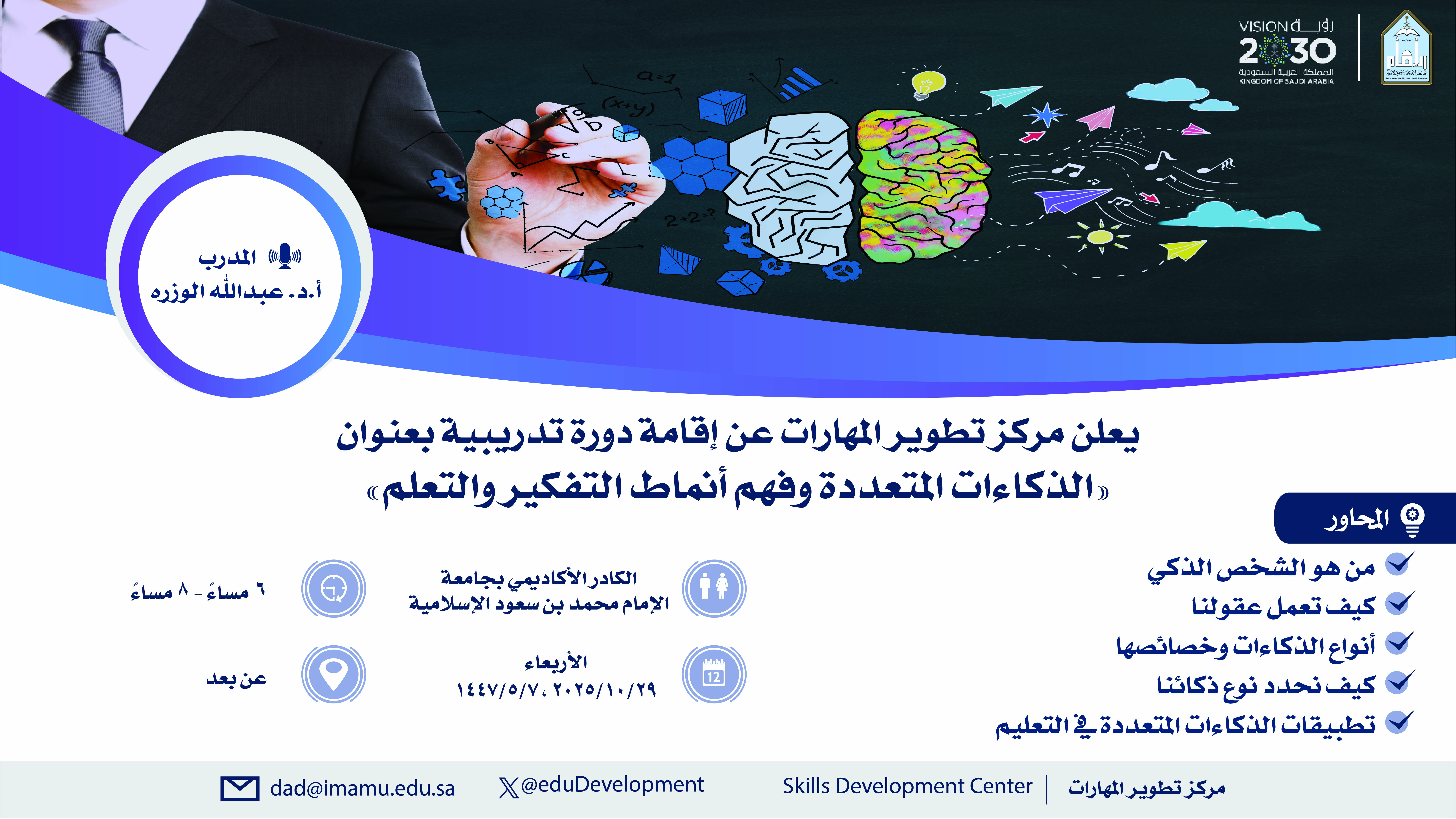دورة (الذكاءات المتعددة وفهم أنماط التفكير والتعلم)