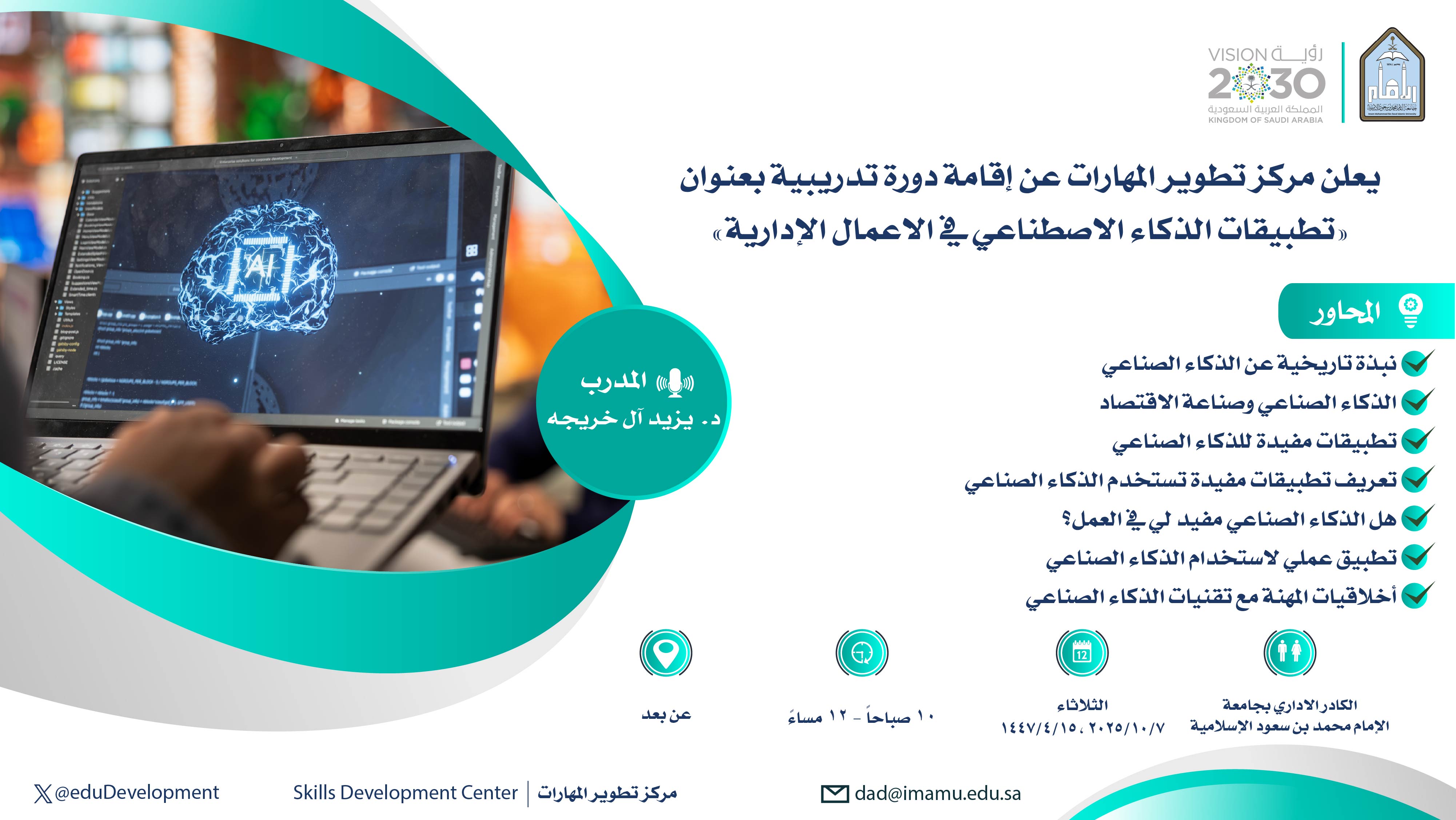 يعلن مركز تطوير المهارات عن اقامة دورة تدريبية بعنوان