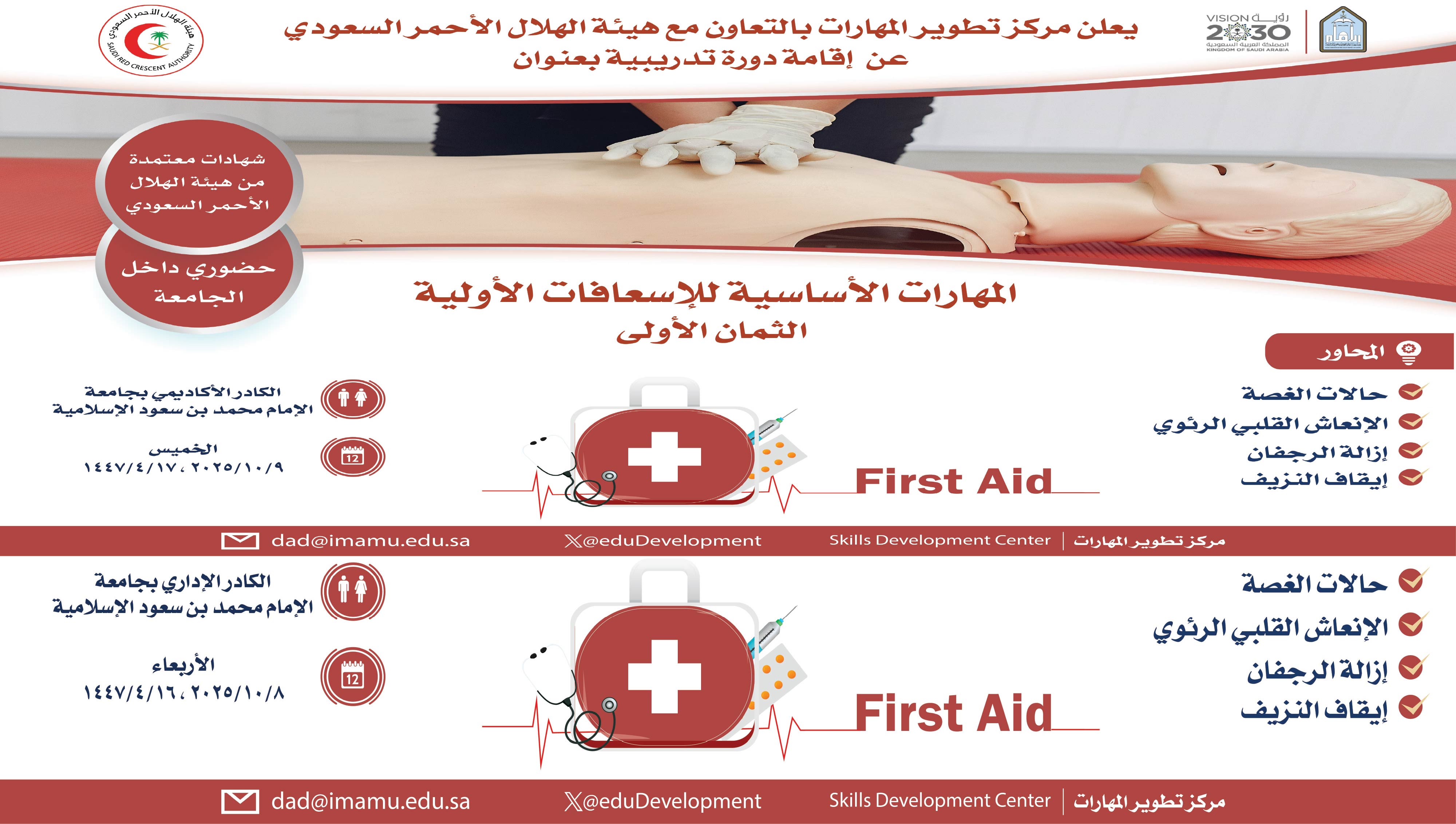 دورة (المهارات الأساسية للإسعافات الأولية الثمان الأولى)