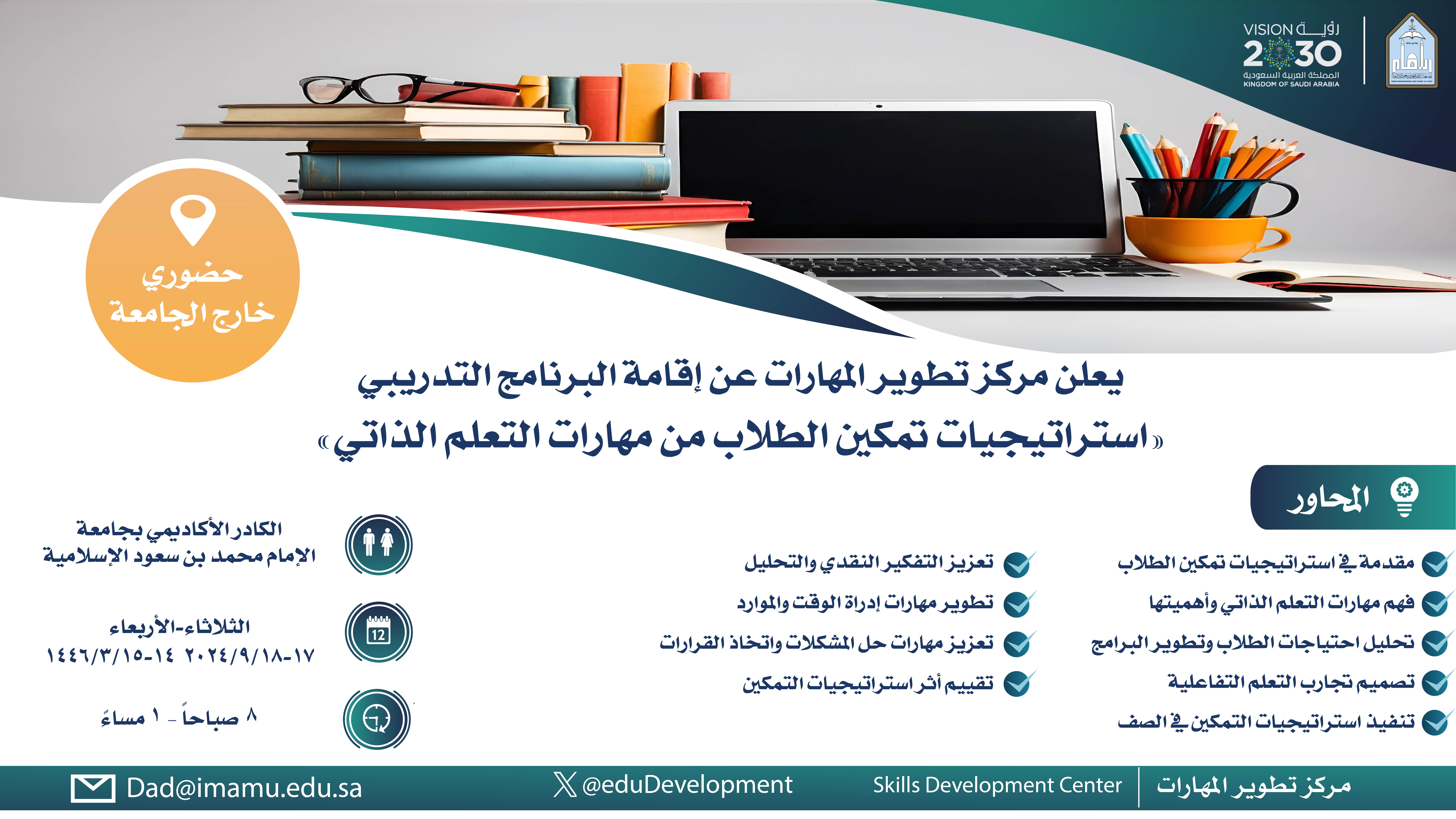 يعلن مركز تطوير المهارات عن تنفيذ البرنامج التدريبي