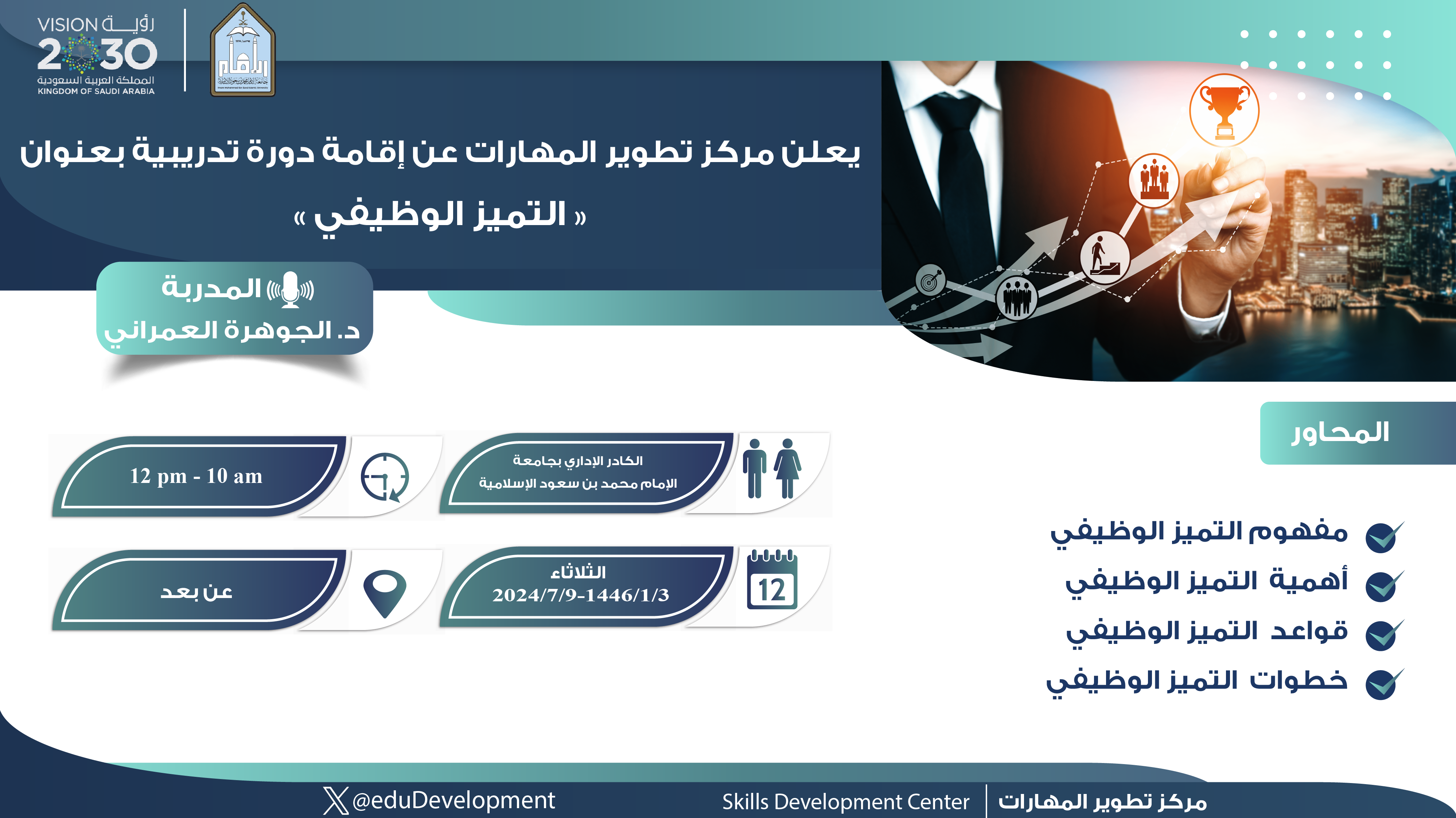 يعلن مركز تطوير المهارات عن اقامة دورة تدريبية بعنوان